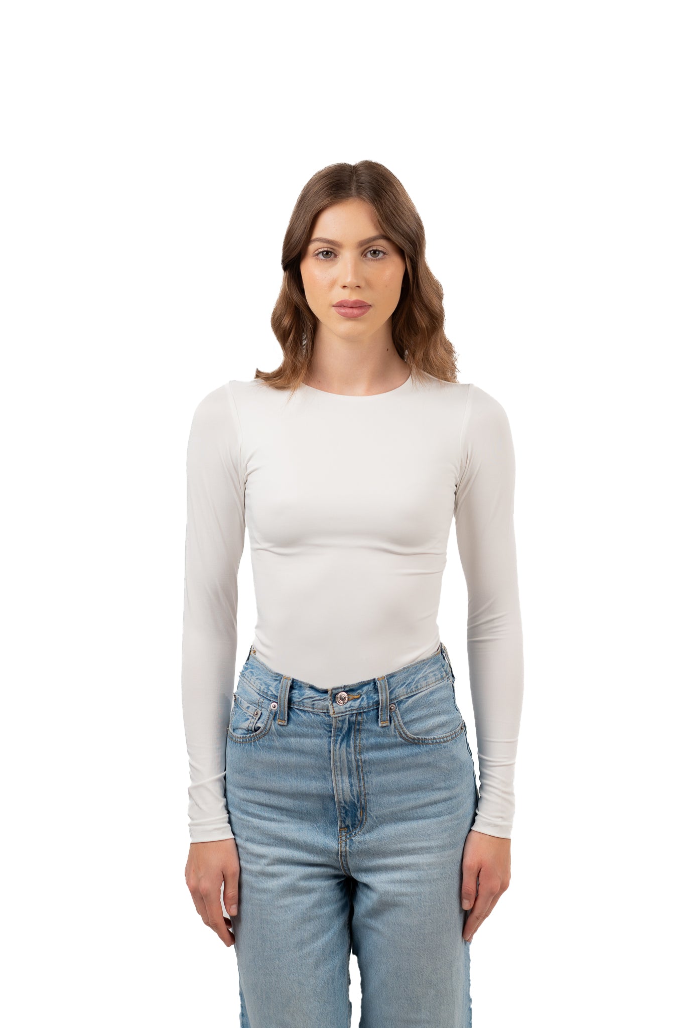 FULL LENGTH LONG SLEEVE CONTOURING TOP WITH A DOUBLE LAYERED BUST AND BACK