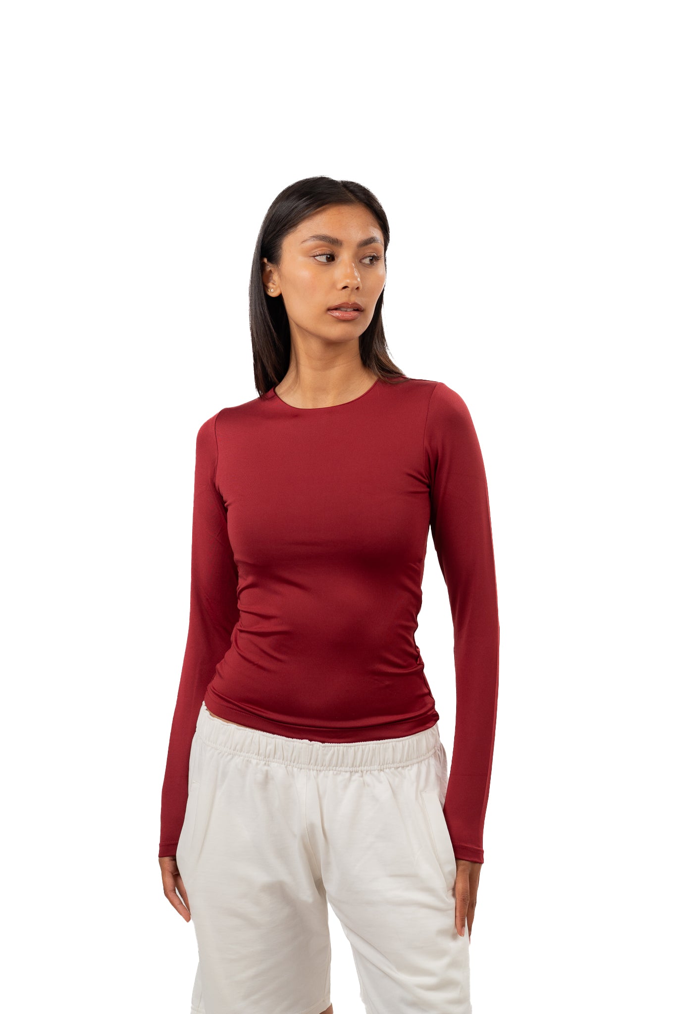 FULL LENGTH LONG SLEEVE CONTOURING TOP WITH A DOUBLE LAYERED BUST AND BACK