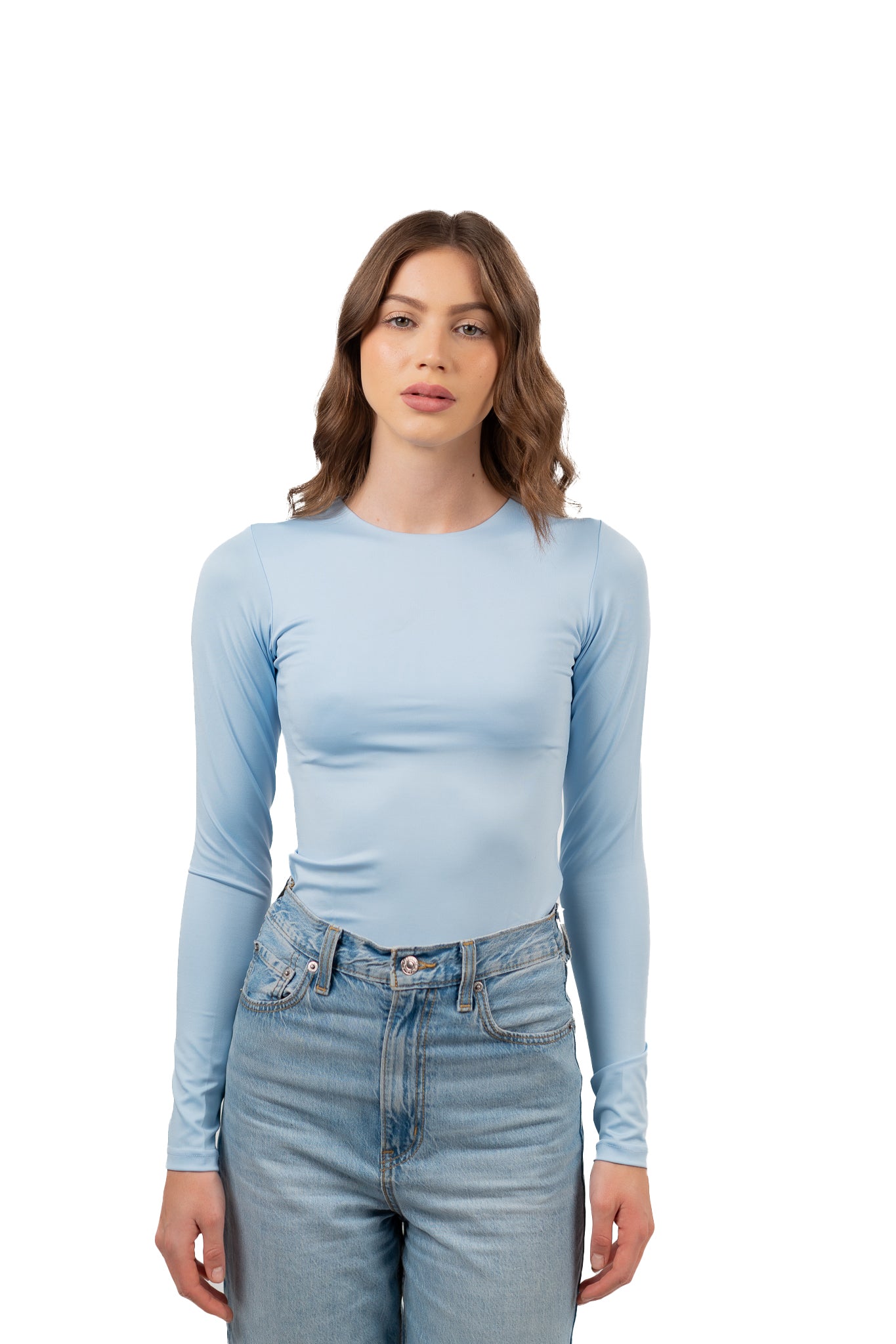 FULL LENGTH LONG SLEEVE CONTOURING TOP WITH A DOUBLE LAYERED BUST AND BACK