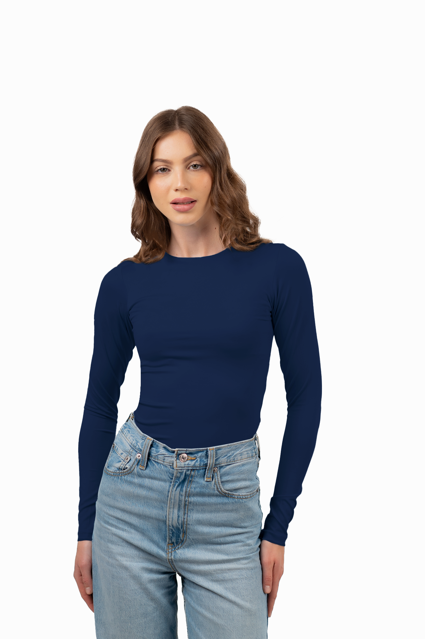FULL LENGTH LONG SLEEVE CONTOURING TOP WITH A DOUBLE LAYERED BUST AND BACK