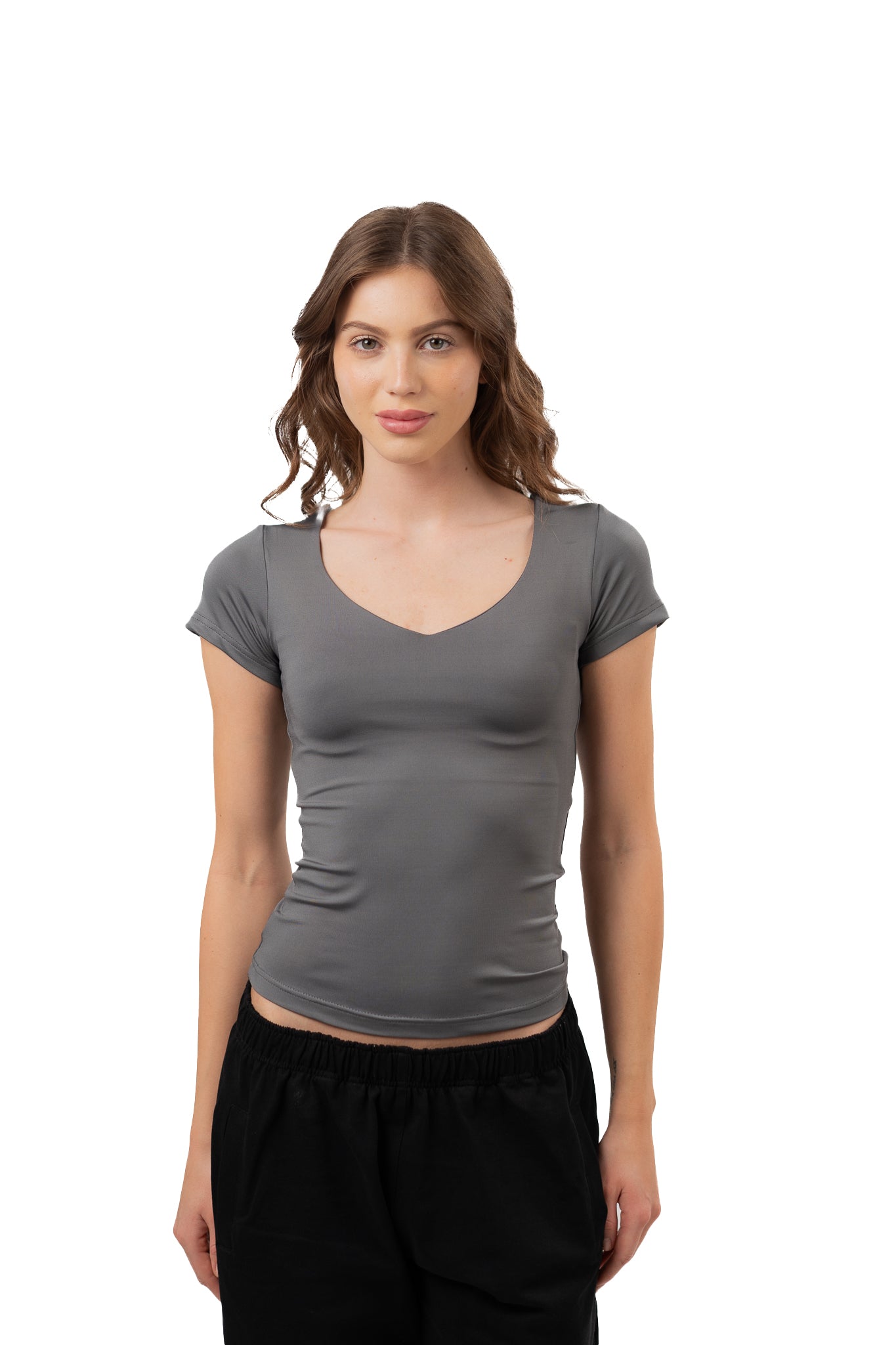 V NECK SHORT SLEEVE CONTOURING TOP