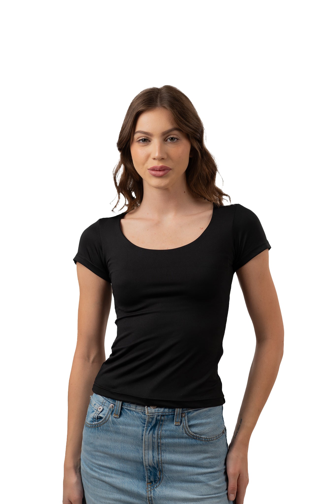 WIDE NECK SHORT SLEEVE CONTOURING TOP