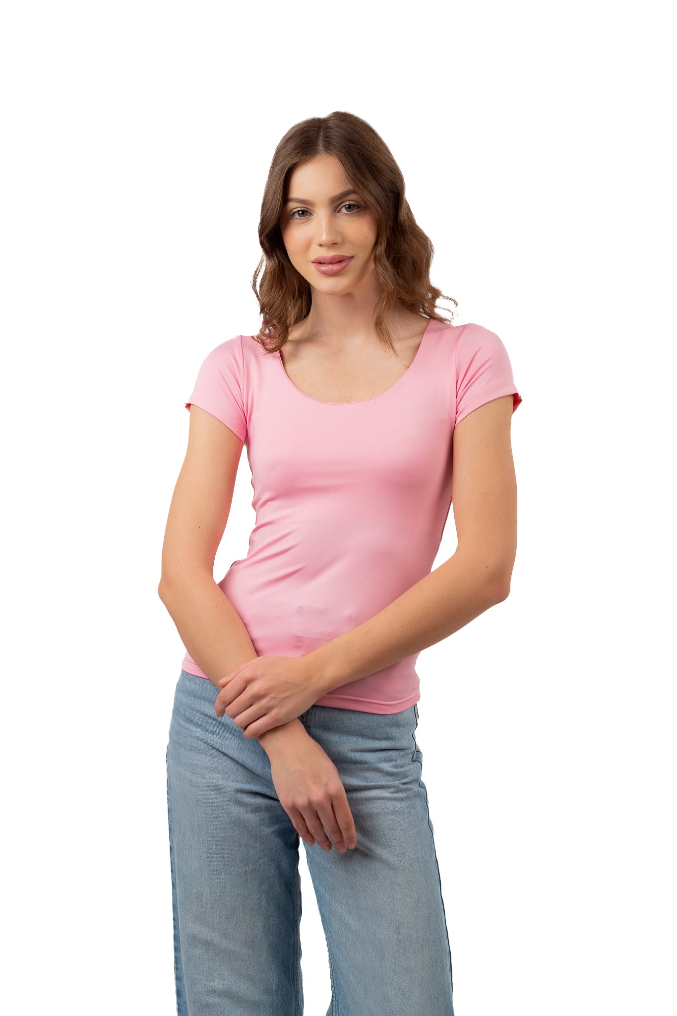WIDE NECK CONTOURING TOP WITH A DOUBLE LAYERED BUST AND BACK