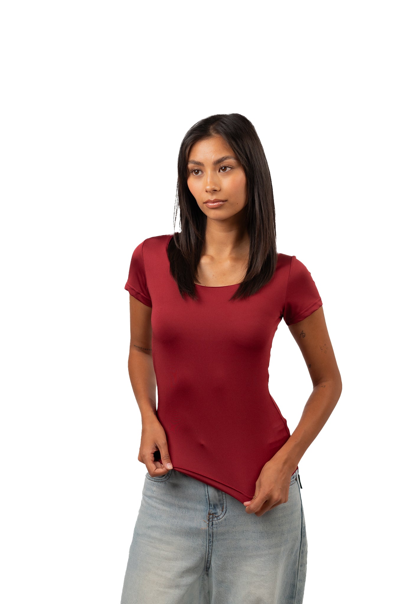 WIDE NECK SHORT SLEEVE CONTOURING TOP