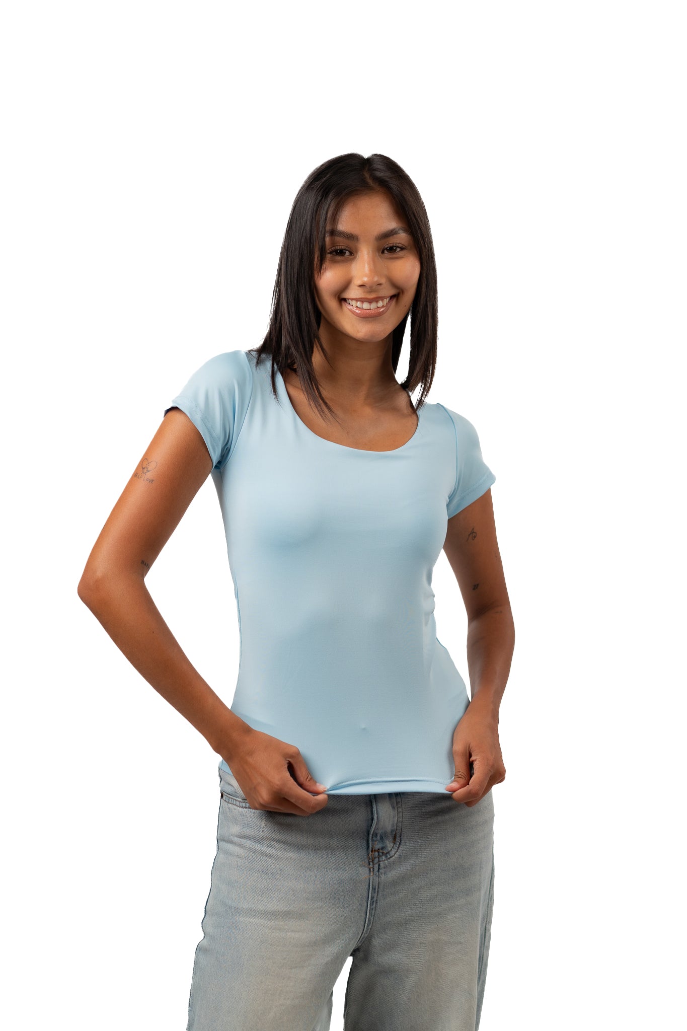WIDE NECK SHORT SLEEVE CONTOURING TOP