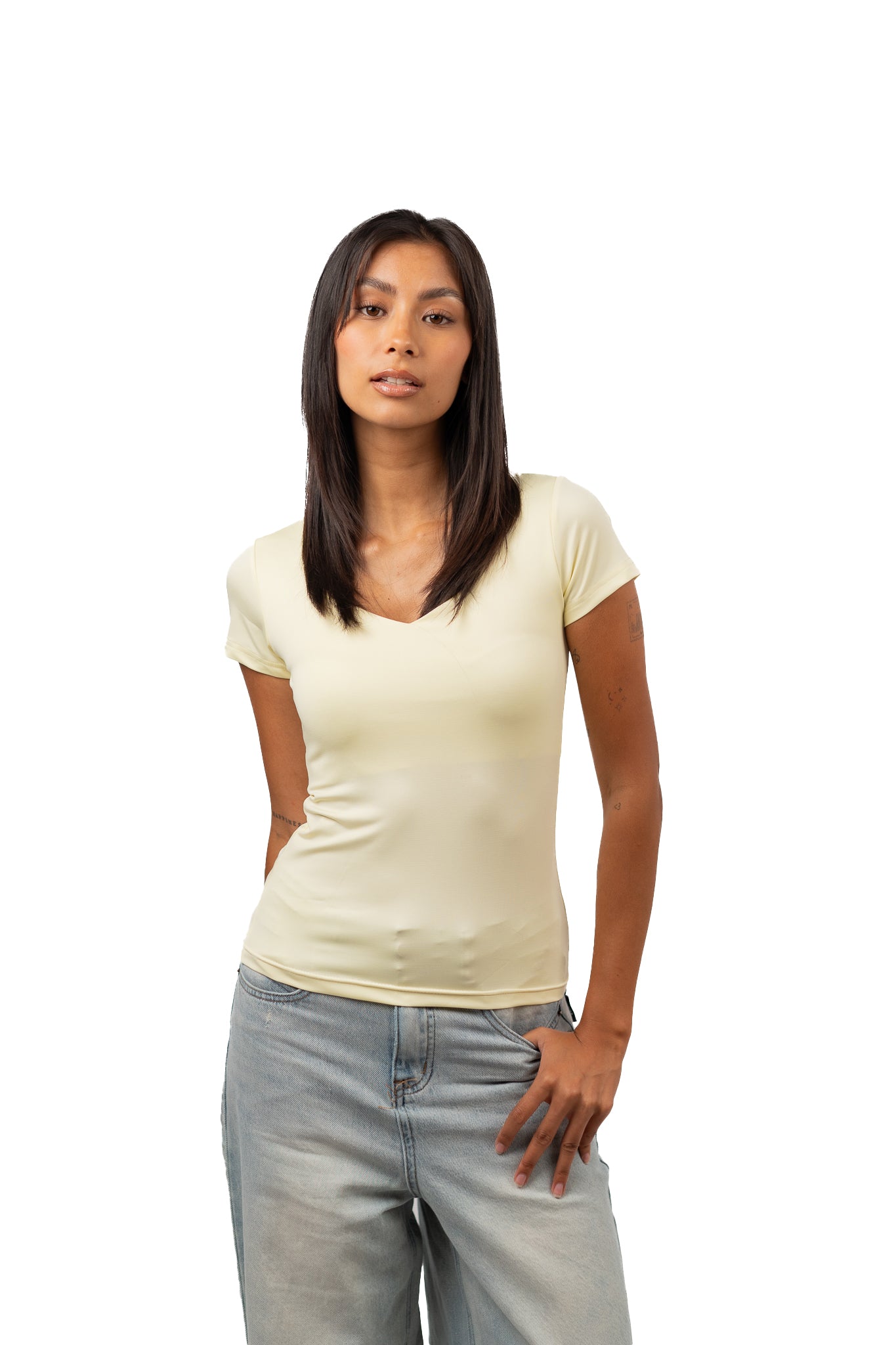 V NECK SHORT SLEEVE CONTOURING TOP